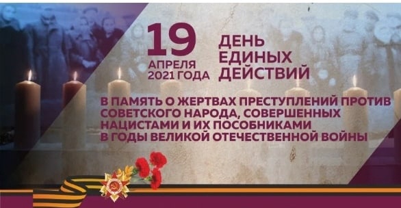 19 апреля 2022 года во всех образовательных организациях России проводится День единых действий в память о геноциде советского народа нацистами и их пособниками в годы Великой Отечественной войны 1941 – 1945 гг. Цель проведения Дня единых действий – сохранение исторической правды о преступлениях нацистов и их пособников в отношении мирных советских граждан в годы Великой Отечественной войны на оккупированной территории.