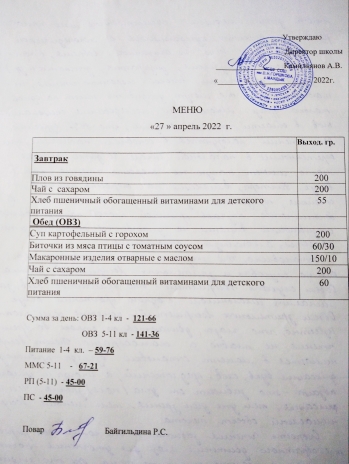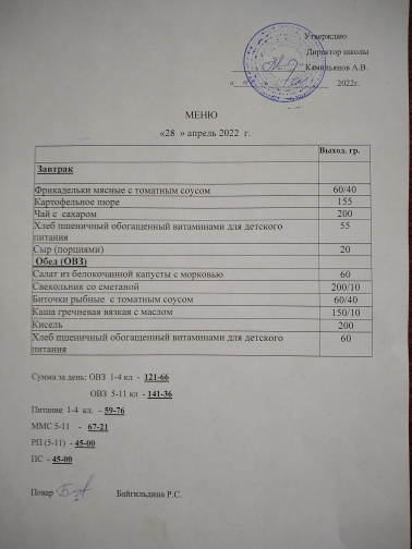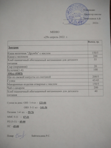 (меню на 29.04.22 г.)