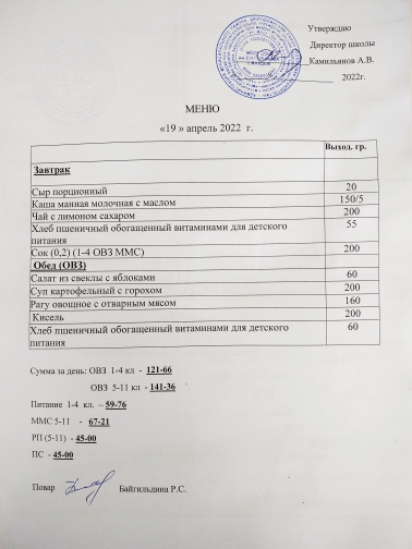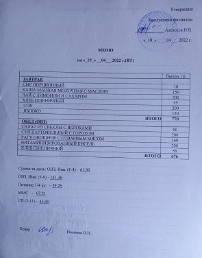(накрытый стол завтрак ММС, ОВЗ, 1-4 кл)