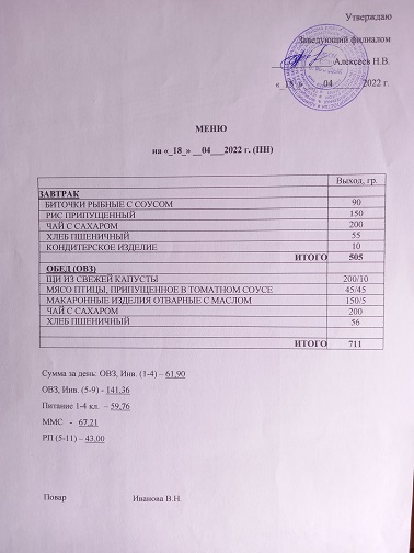 (Завтрак ОВЗ 5-9 кл. (филиал Ярмино))