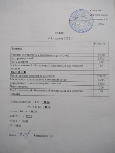(Обед обучающихся ОВЗ 5-11 кл.)
