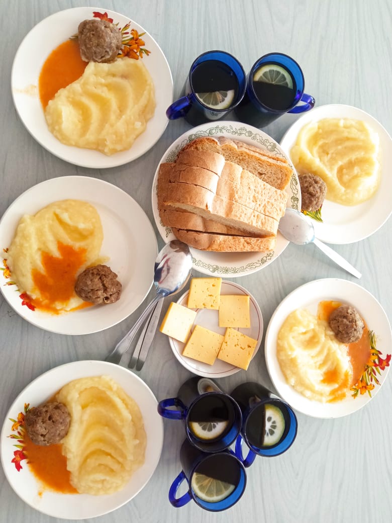 (Накрытый стол завтрак)