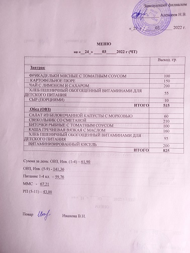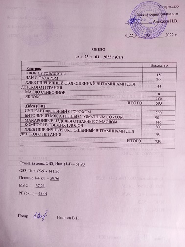 (Обед обучающихся ОВЗ 1-4 филиал)