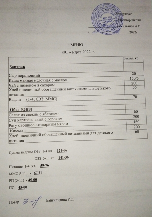 (Обед обучающихся ОВЗ 5-11 кл.)