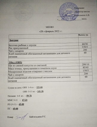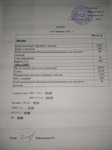 (меню на 25.02.22 г.)