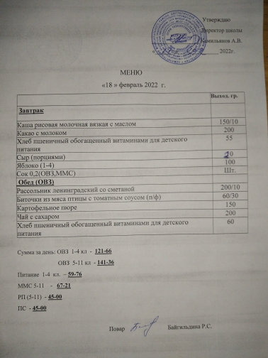 (Обед обучающихся ОВЗ 5-11 кл.)