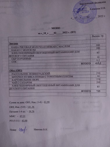 (Обед обучающихся ОВЗ 1-4 филиал)