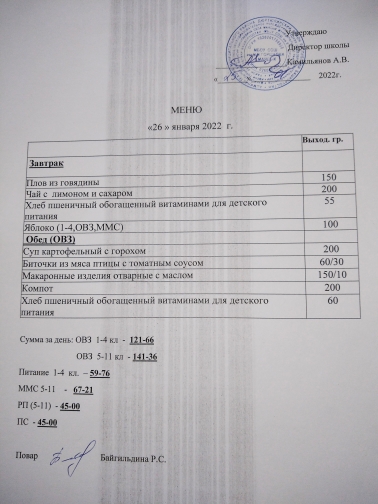 (Накрытый стол завтрак ОВЗ, ММС 1-4 кл)
