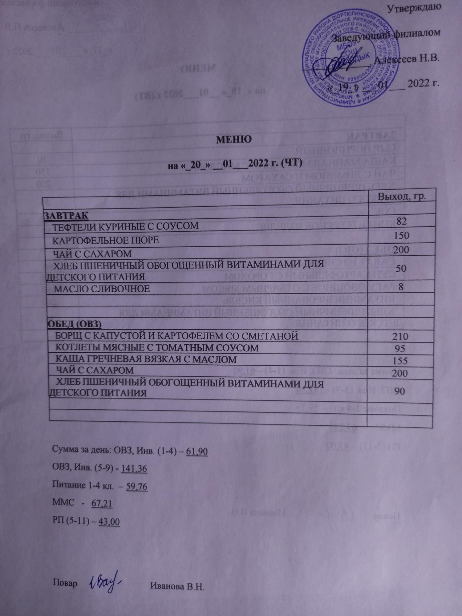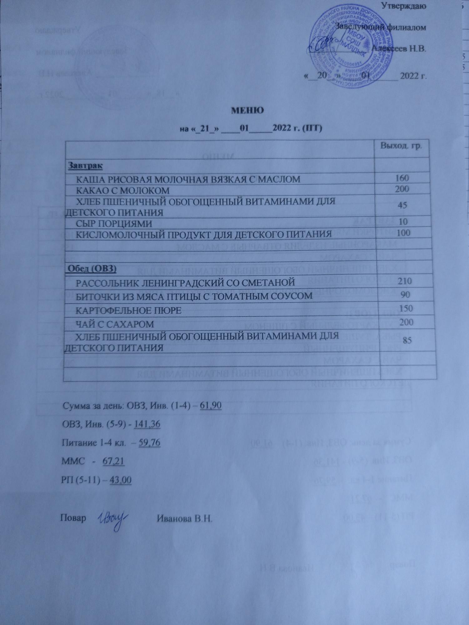 (меню на 20.01.22 филиал)