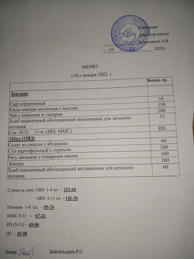 (меню на 18.01.22 г.)