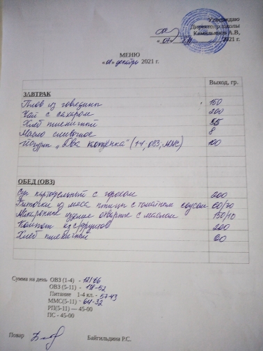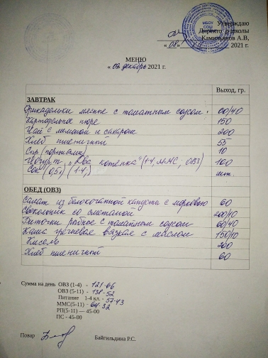 (Обед обучающихся ОВЗ 5-11 кл.)