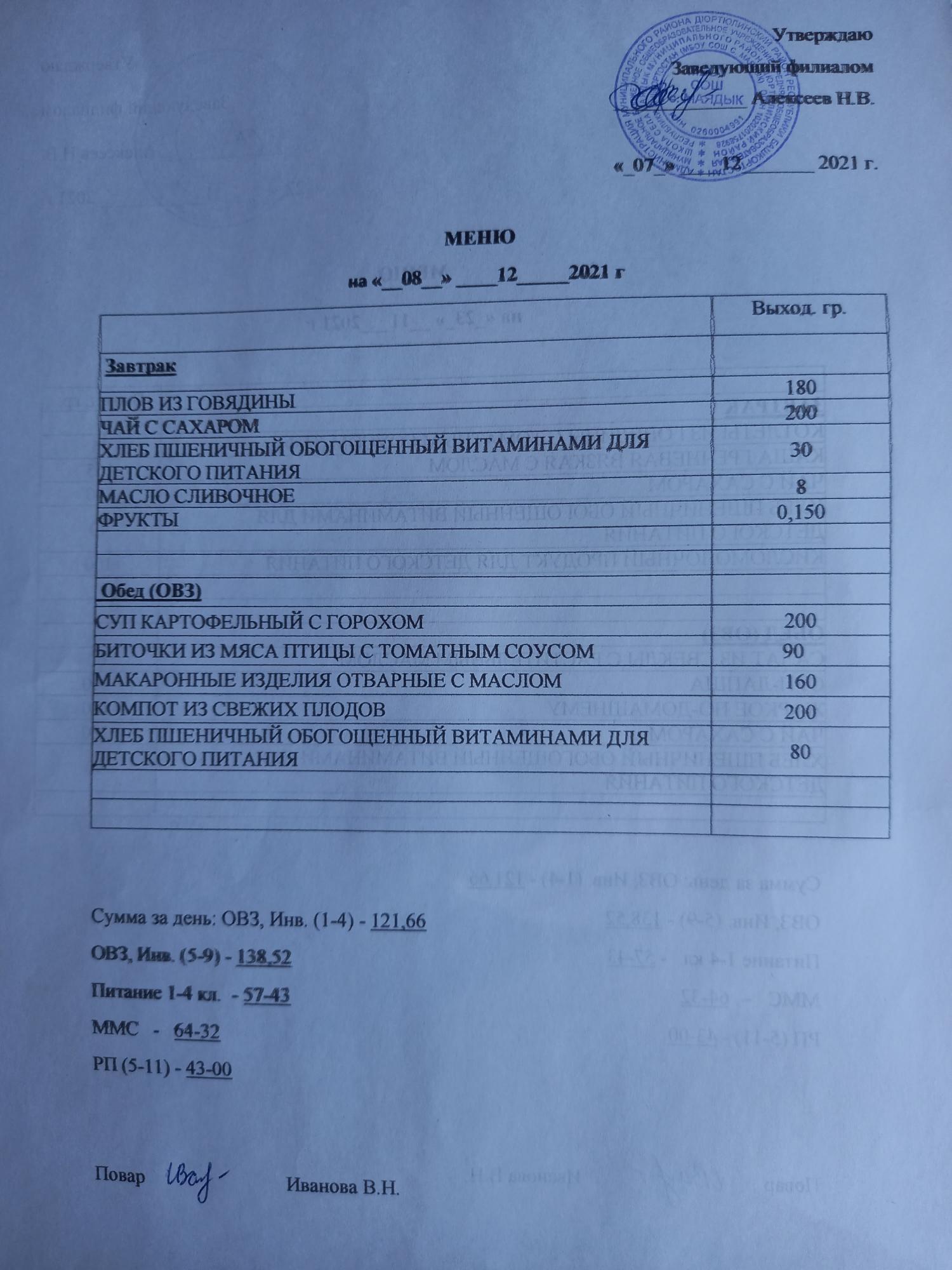 (Обед обучающихся ОВЗ 1-4 филиал)