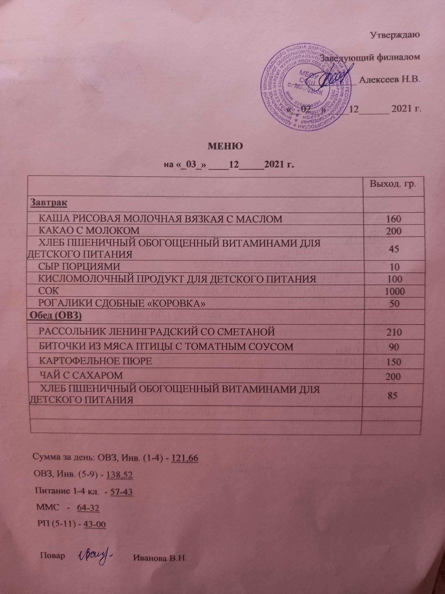 (Завтрак ОВЗ 5-9 кл. (филиал Ярмино))