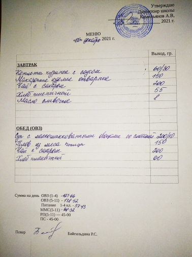 (Обед обучающихся ОВЗ 5-11 кл.)