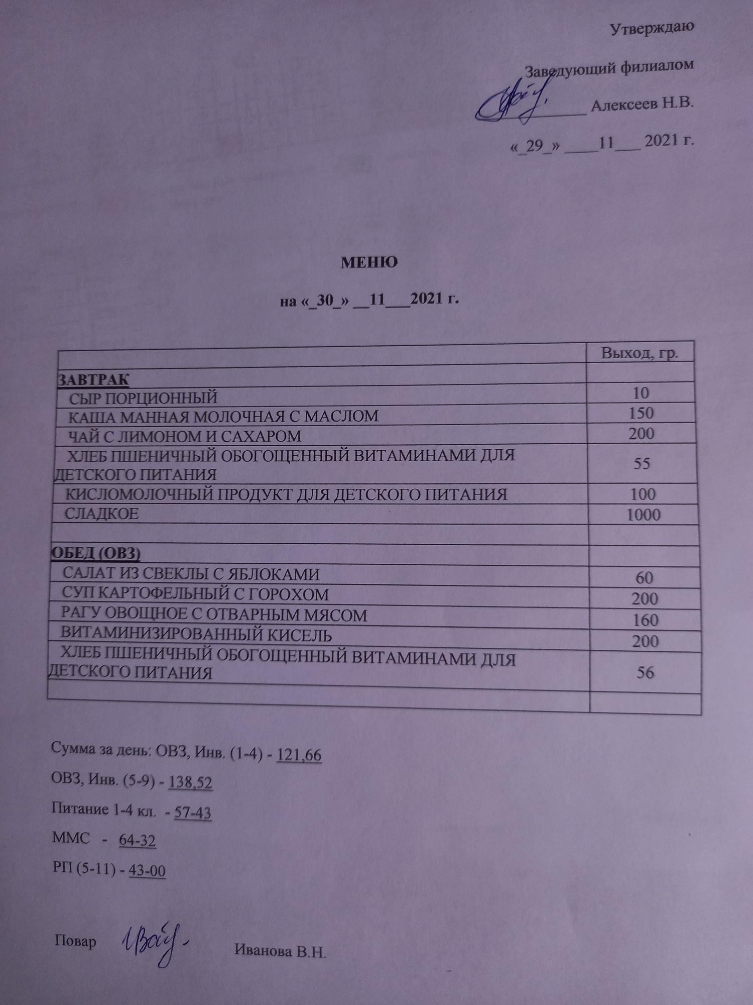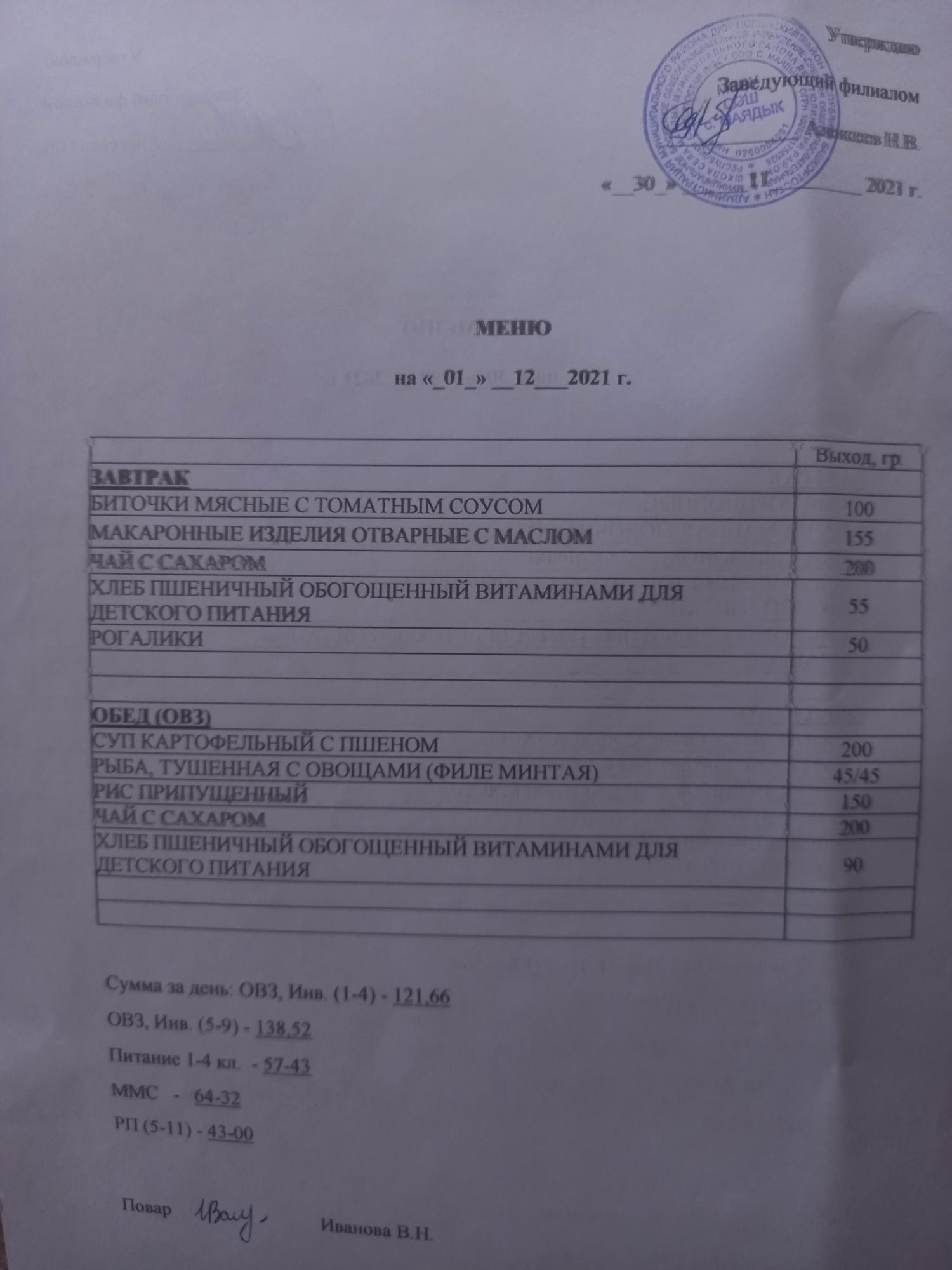 (Завтрак ОВЗ 5-9 кл. (филиал Ярмино))
