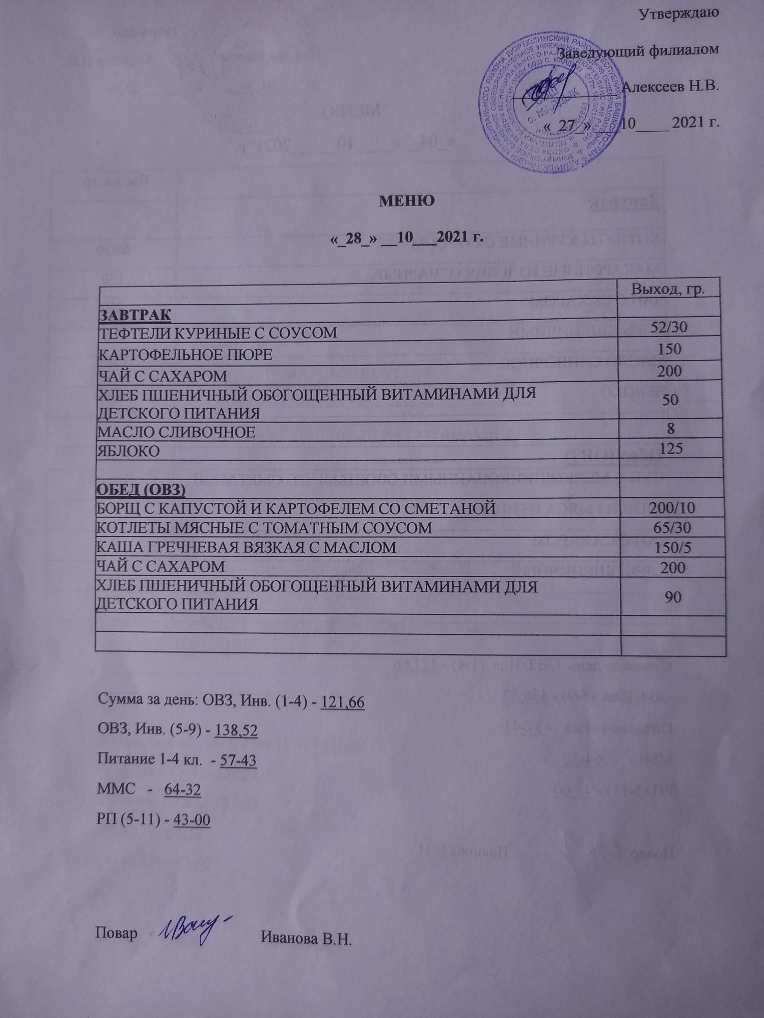 (Завтрак ОВЗ 5-9 кл. (филиал))