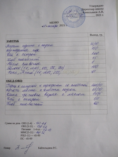 (Обед обучающихся ОВЗ 5-11 кл.)