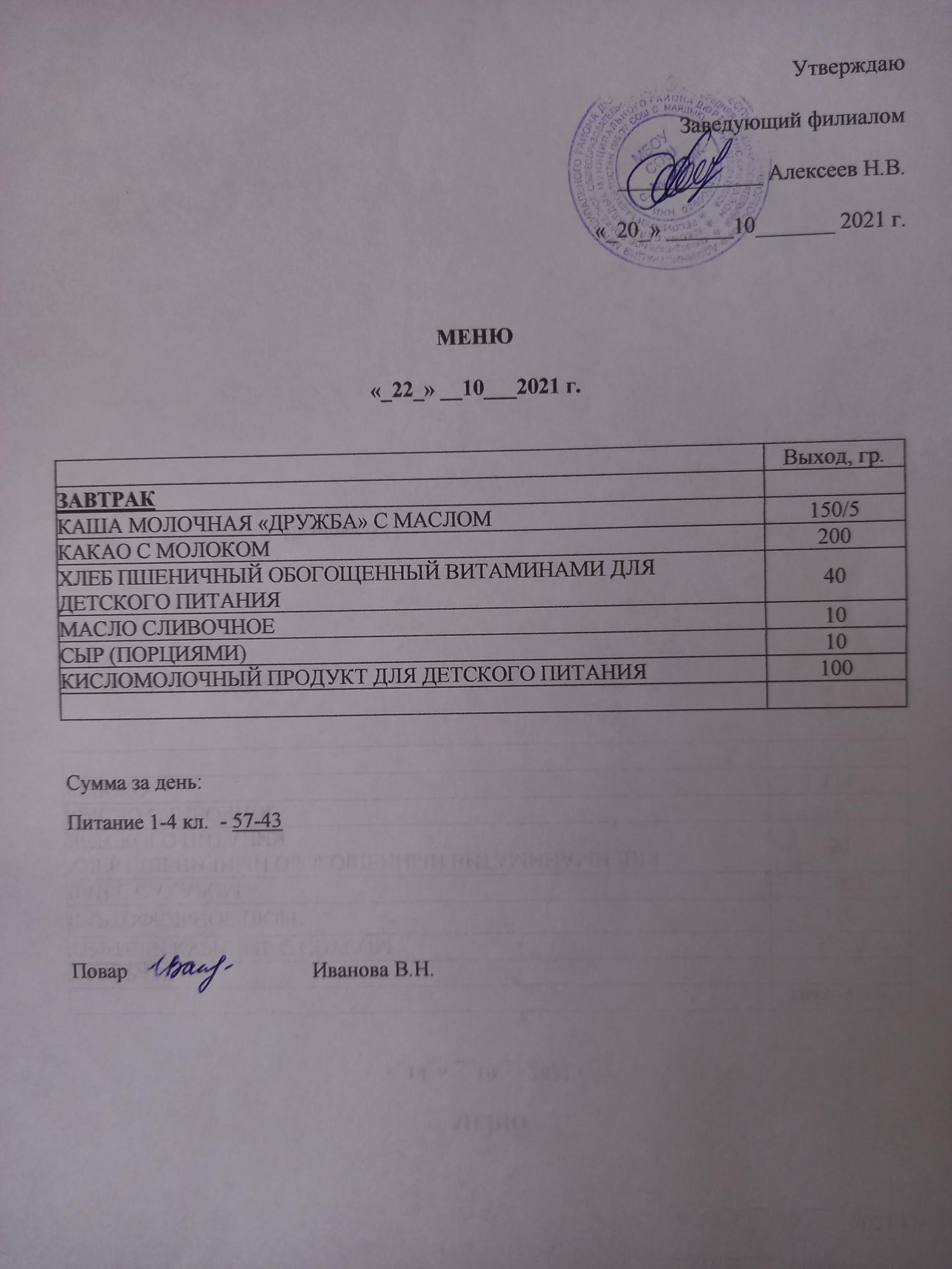 (Меню на 22.09.21 г. (Ярмино филиал))