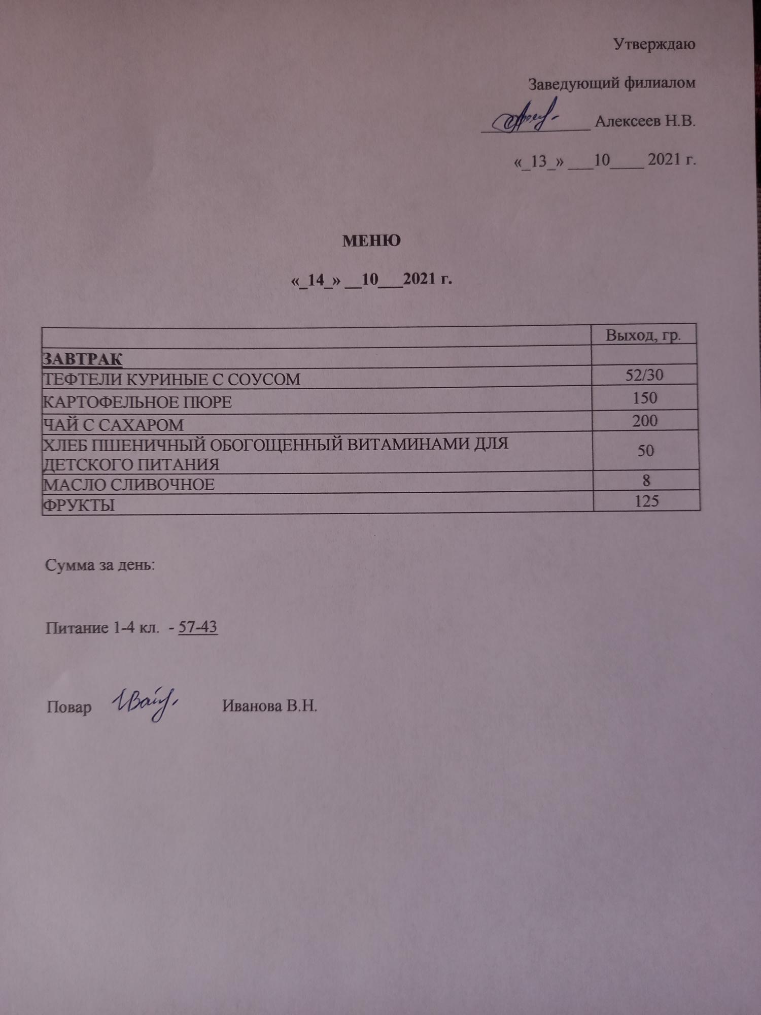 (Завтрак 1-4 кл. (филиал Ярмино))