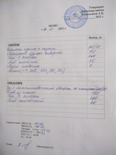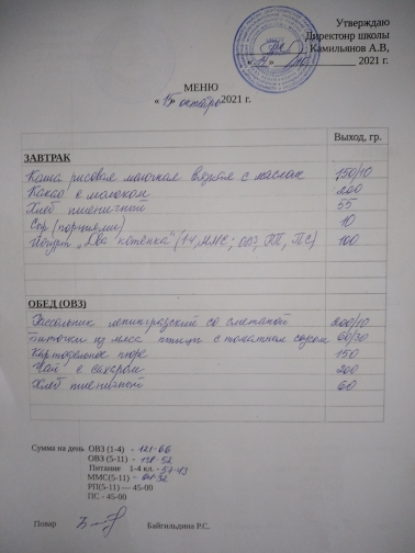 (Обед обучающихся ОВЗ 5-11 кл.)