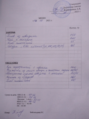 (Обед обучающихся ОВЗ 1-4, 5-11 кл.)