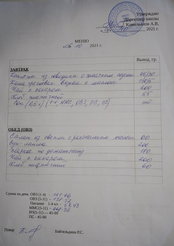 (Завтрак ОВЗ 1-4, 5-11 кл.)