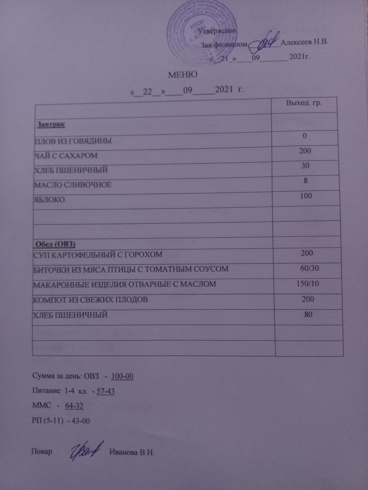 (Меню на 23.09.21 г.(Ярмино филиал))