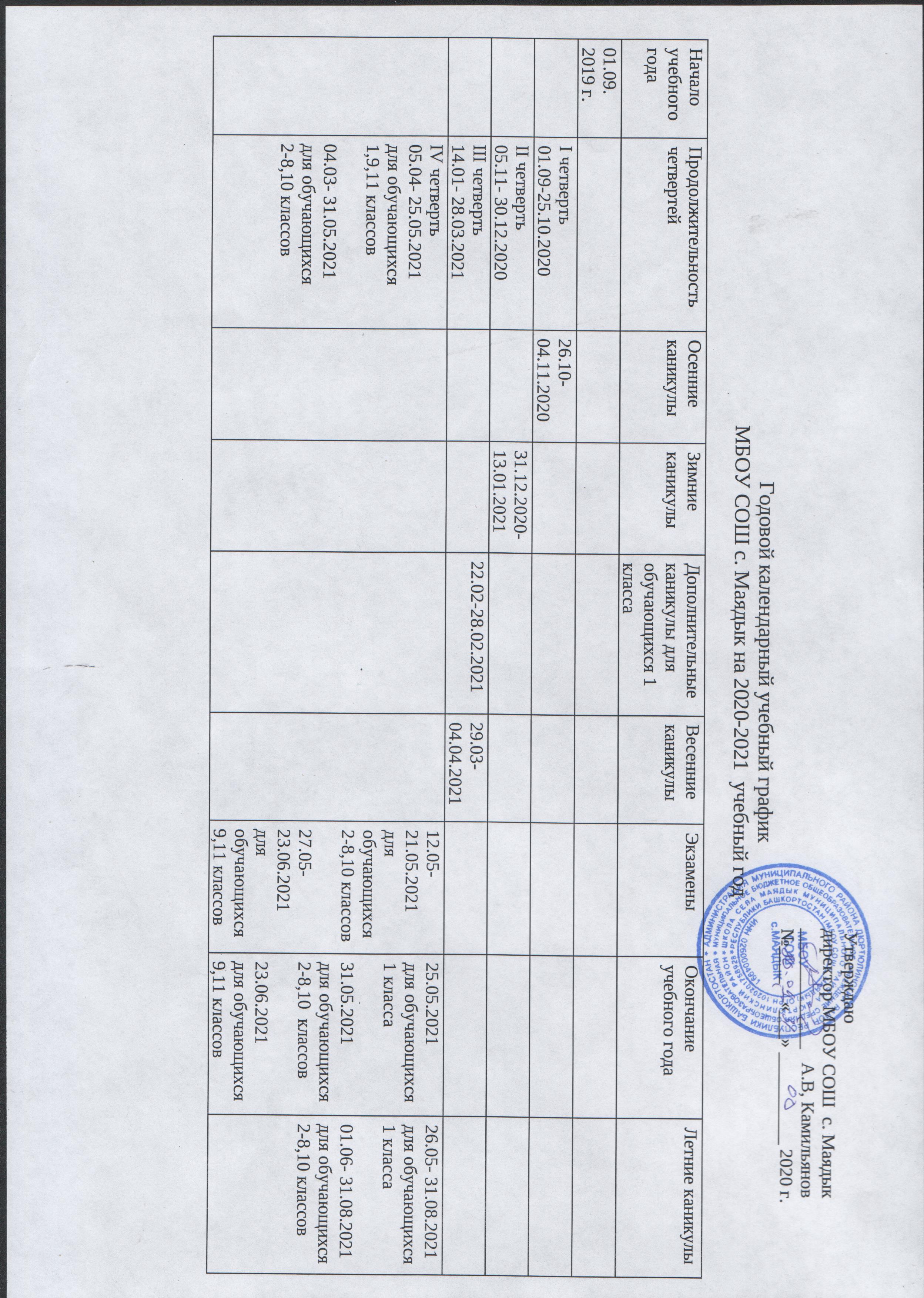 Годовой календарный учебный график МБОУ СОШ с. Маядык на 2021-2022 уч.год